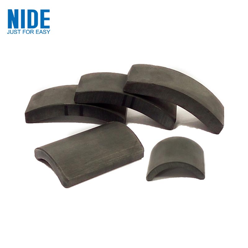 Feritni magnet sa stalnim lukom: Proizveden je keramičkim procesom. Tekstura je relativno tvrda i krt je materijal. Budući da feritni magnet ima dobru temperaturnu otpornost, nisku cijenu i umjerene performanse, postao je najčešće korišteni trajni magnet.